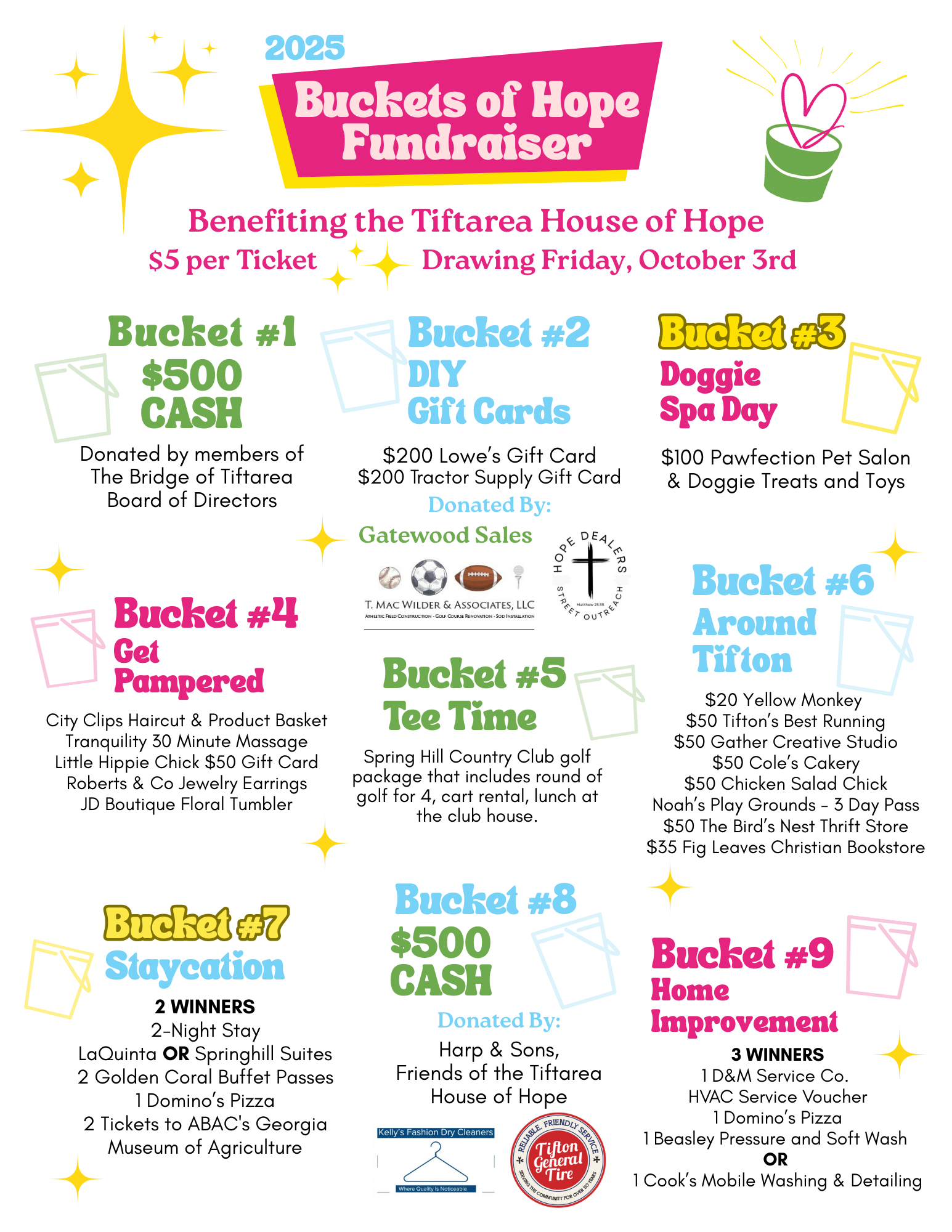 Get your tickets today for the annual Buckets of Hope fundraiser and enter to win some great items!